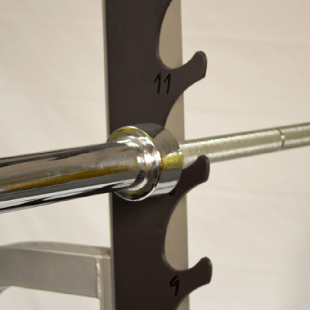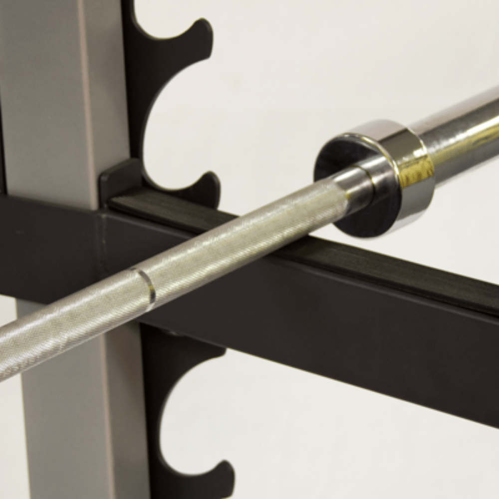 • 4 Olympic storage posts that suspend weight plates for quick and easy access while keeping your workout area organized