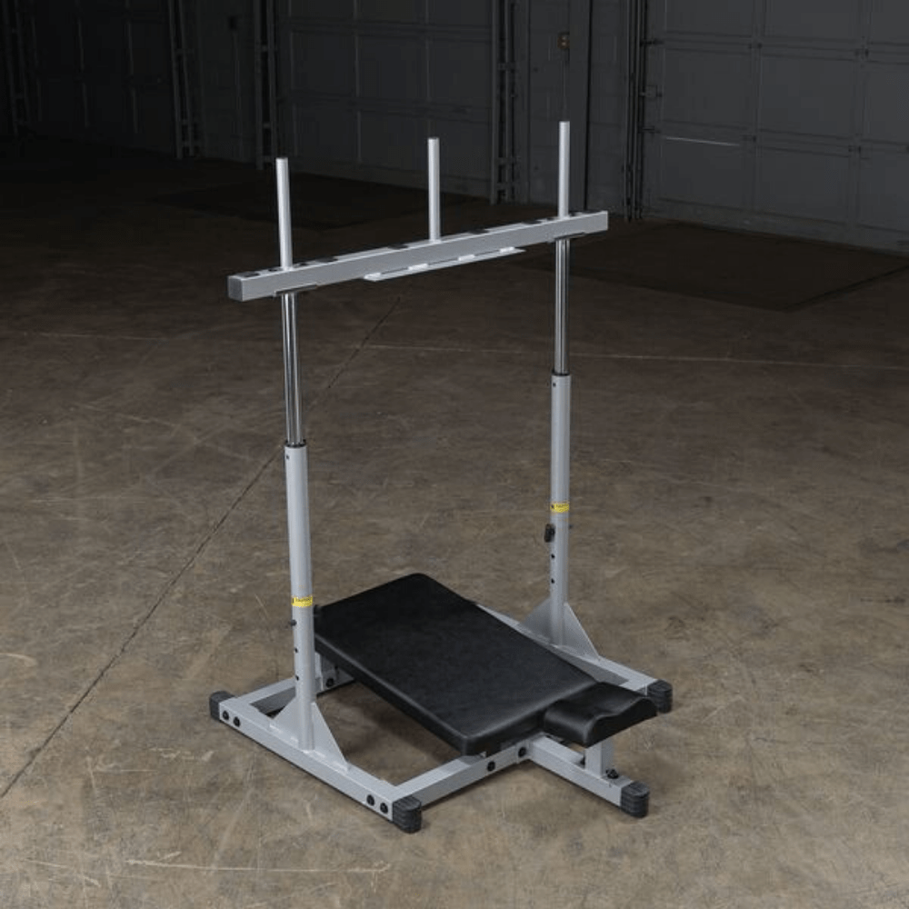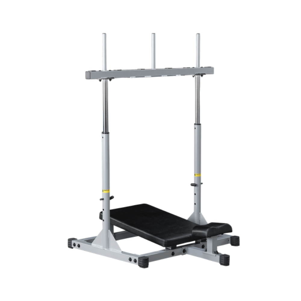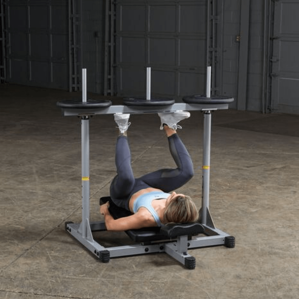 The Powerline Vertical Leg Press provides an impressive platform for obtaining huge muscle gains through isolated lower body workouts. The unique vertical design not only reinforces support for your back and hips but also minimizes space used to perform the exercises. Extra-thick back pad and contoured head and neck pad lock you into the proper exercise position while providing comfort during your leg press or calf raises routines. Features include dual adjustable 1/2" steel locking pins, three different starting and stopping positions and a diamond plate steel press deck for no-slip control.