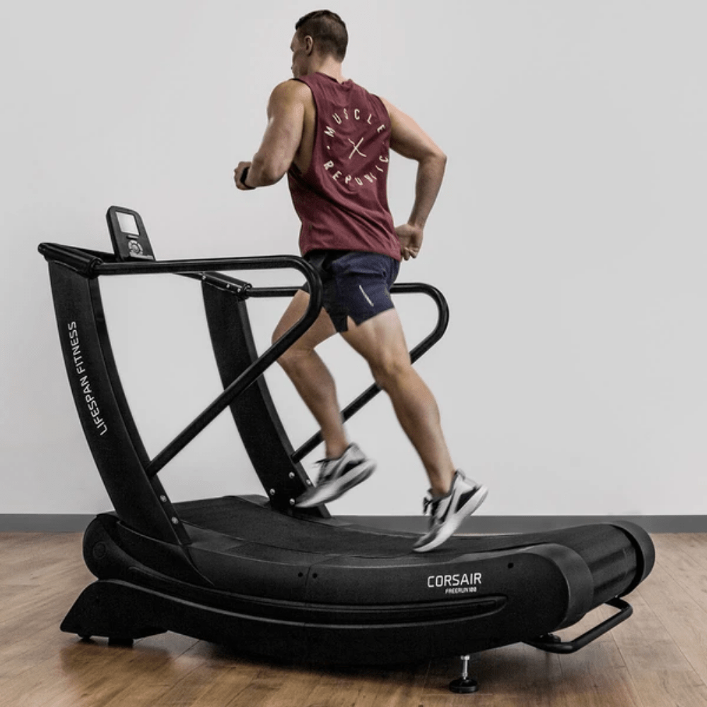Unlimited SpeedExperience a true running simulation with the Corsair FreeRun 100 Curved Treadmill. With the ultimate freedom to control your own pace and intensity at will, the Corsair FreeRun 100 is perfect for High-Intensity Interval Training (HIIT). Push as hard as you can for maximum intensity, quickly and easily change your pace for cool down and recovery intervals.