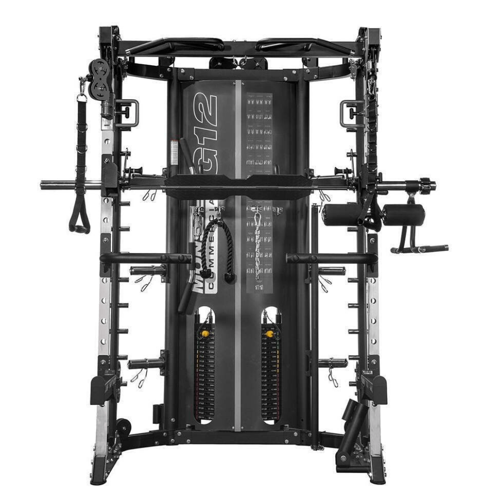 The Force USA G12 All-In-One Trainer / Counter Balanced Smith Machine & Squat Rack comes with an enormous Dual 90.5K/201lb weight stack (1:1 ratio) total (181kg/ 402lb) built to the very highest of quality.