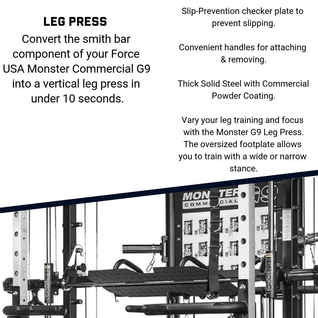 Strength, Power, Bodybuilding, Muscular Endurance, Glycolytic Efficiency, Concentric or Eccentric (Negative) training, Compound or Isolation, Plyometric, Slow Twitch or Fast Twitch Fibres training. The Force USA G9 All-In-One Trainer is an all-in-one comprehensive training solution.
