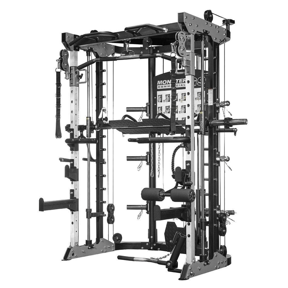 Counter-balanced commercial Smith Machine & commercial grade guide rails providing ultra smooth movement. Fitted with safe lock & release mechanics and safety catch allowing you to max out your training without the need for a spotter.
