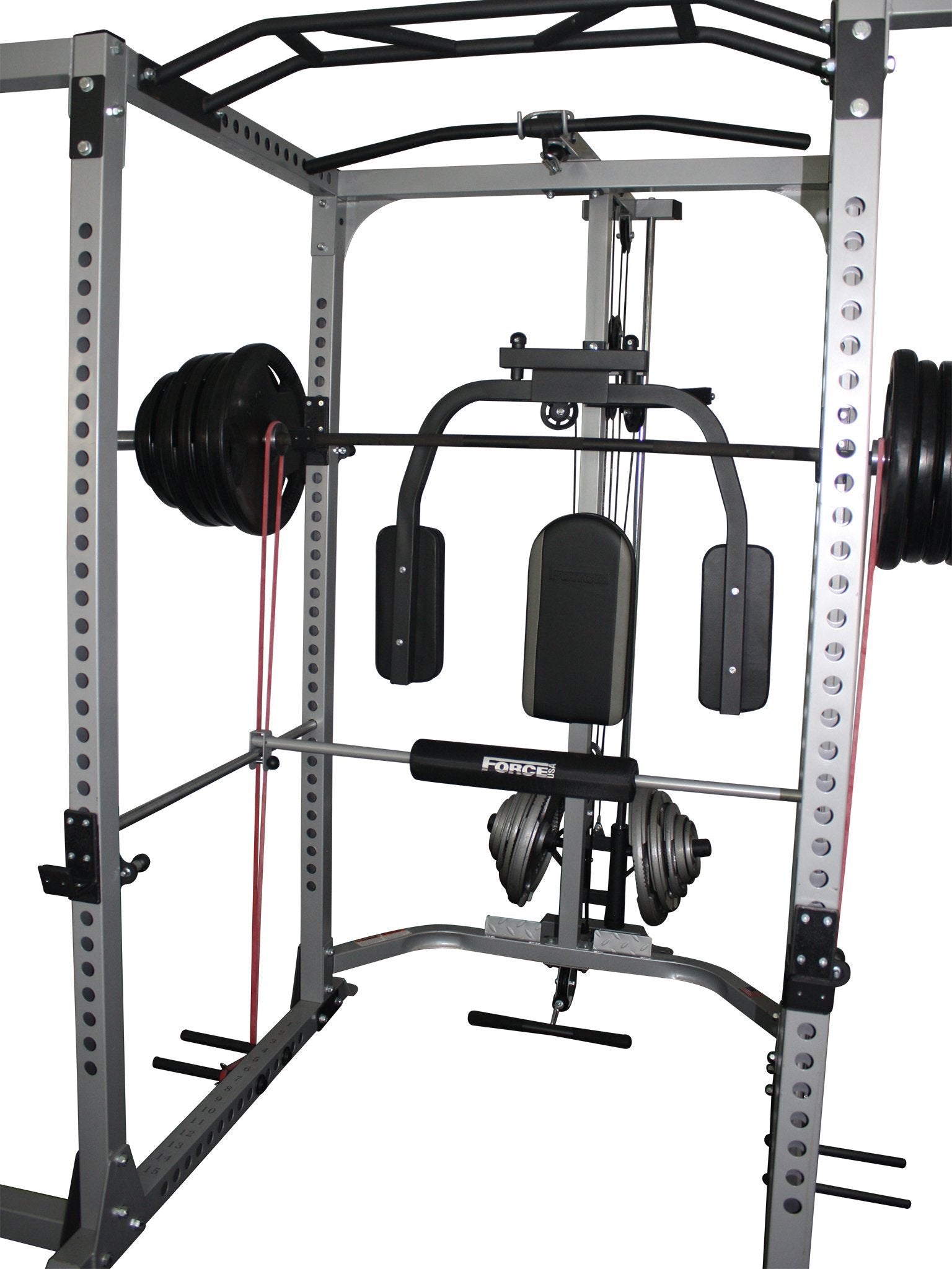 The F-PCP is an attachment that connects to the F-PC or F-UPC Power cages and the F-PCL (Lat Pulldown & Low Pulley) attachment.
