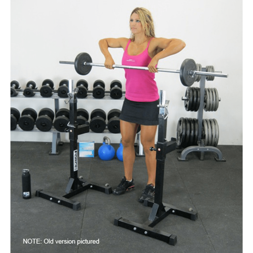 Versatile Home Squat Stand with adjustable height, non-slip feet and rear wheels for easy movement.