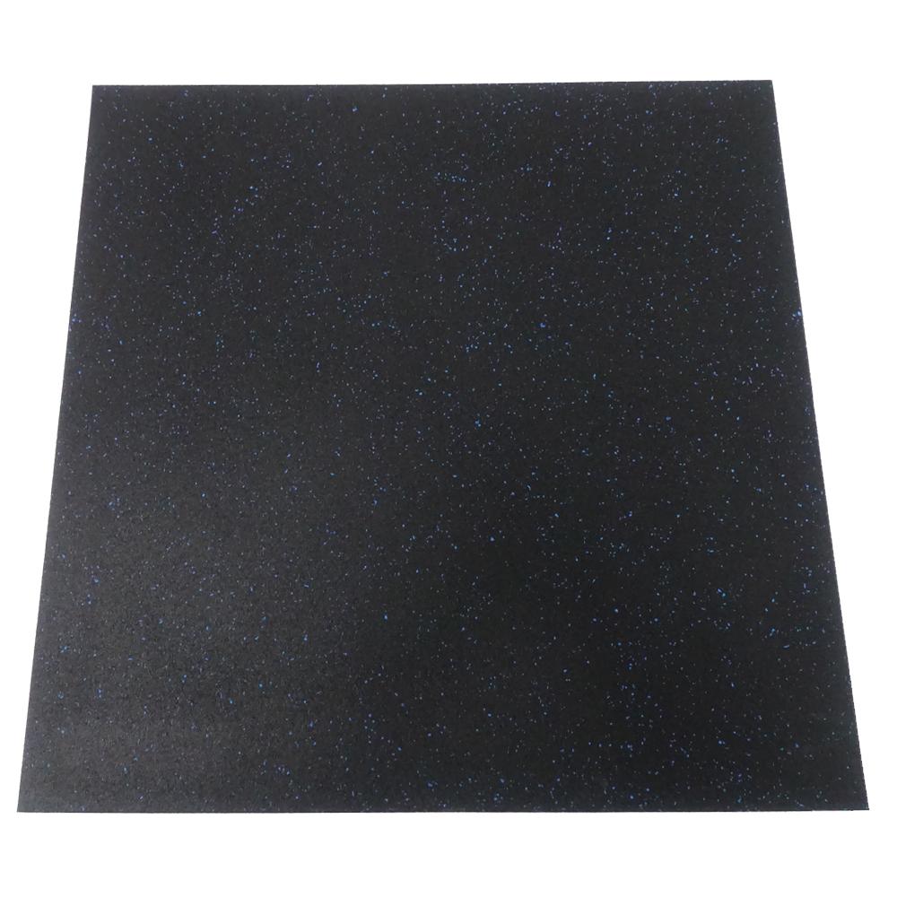| Home & Fitness Rubber Flooring Tile 1M x 1M x 15MM with 6% Blue Fleck These tiles are designed to offer many of the features given by Commercial Grade Rubber Flooring Tiles but with a very economical price. Made from recycled tyre rubber and engineered to handle heavy-duty wear, Home & Fitness Rubber Flooring provides outstanding durability, flexibility, comfort and slip-resistance. |