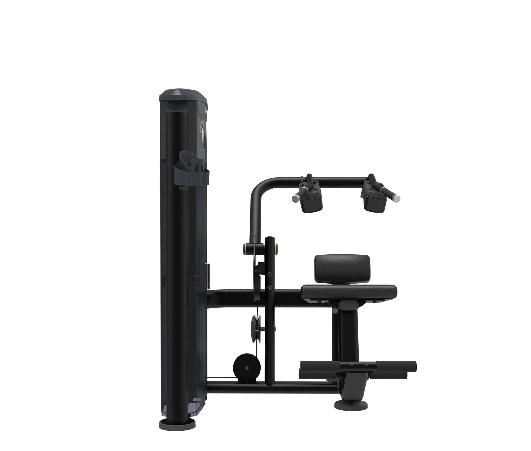 Pin selectorized equipment for working out rectus abdominal muscle. The user can effectively work out the abdominal muscle by bending forward after choosing the appropriate weight.