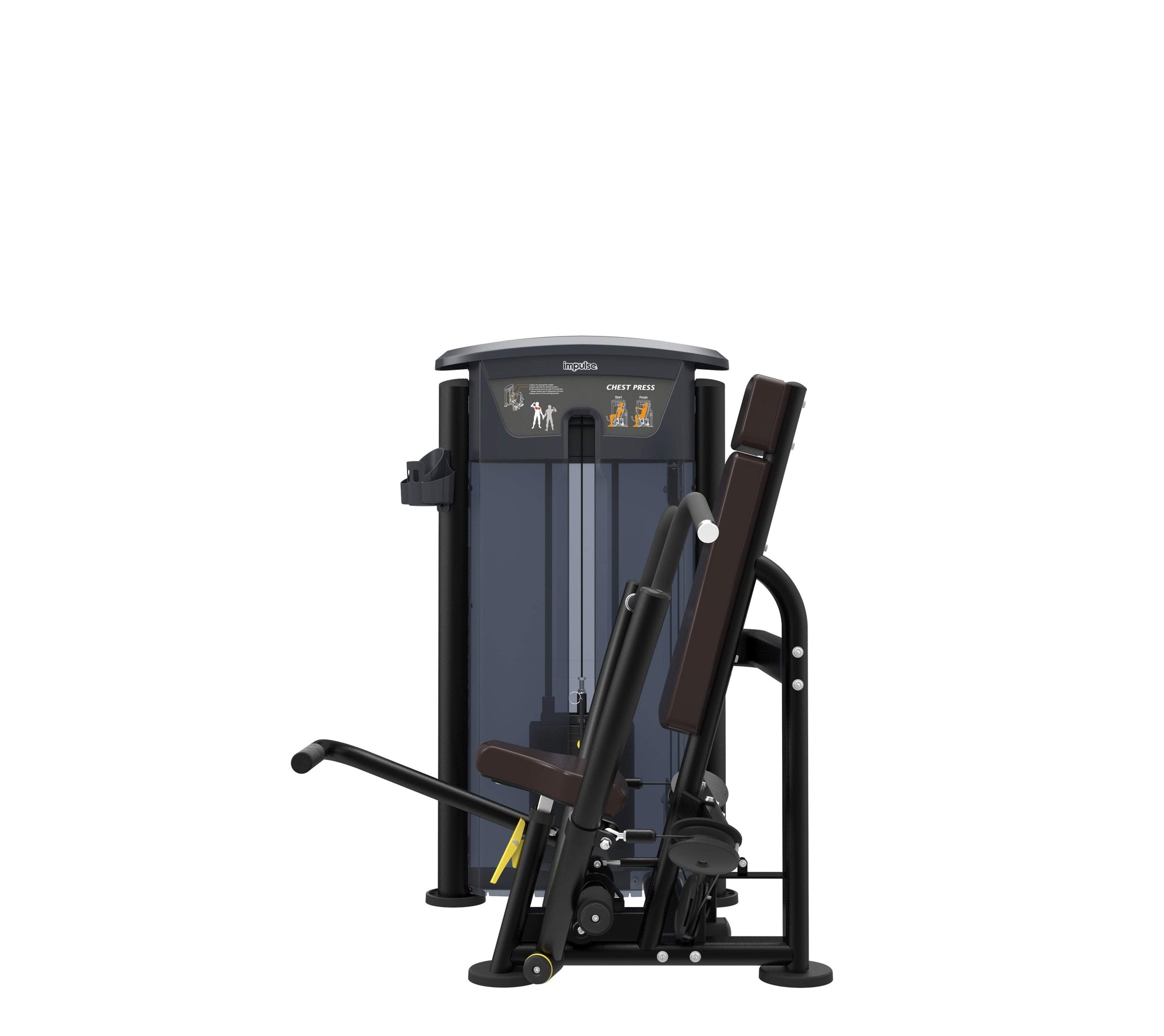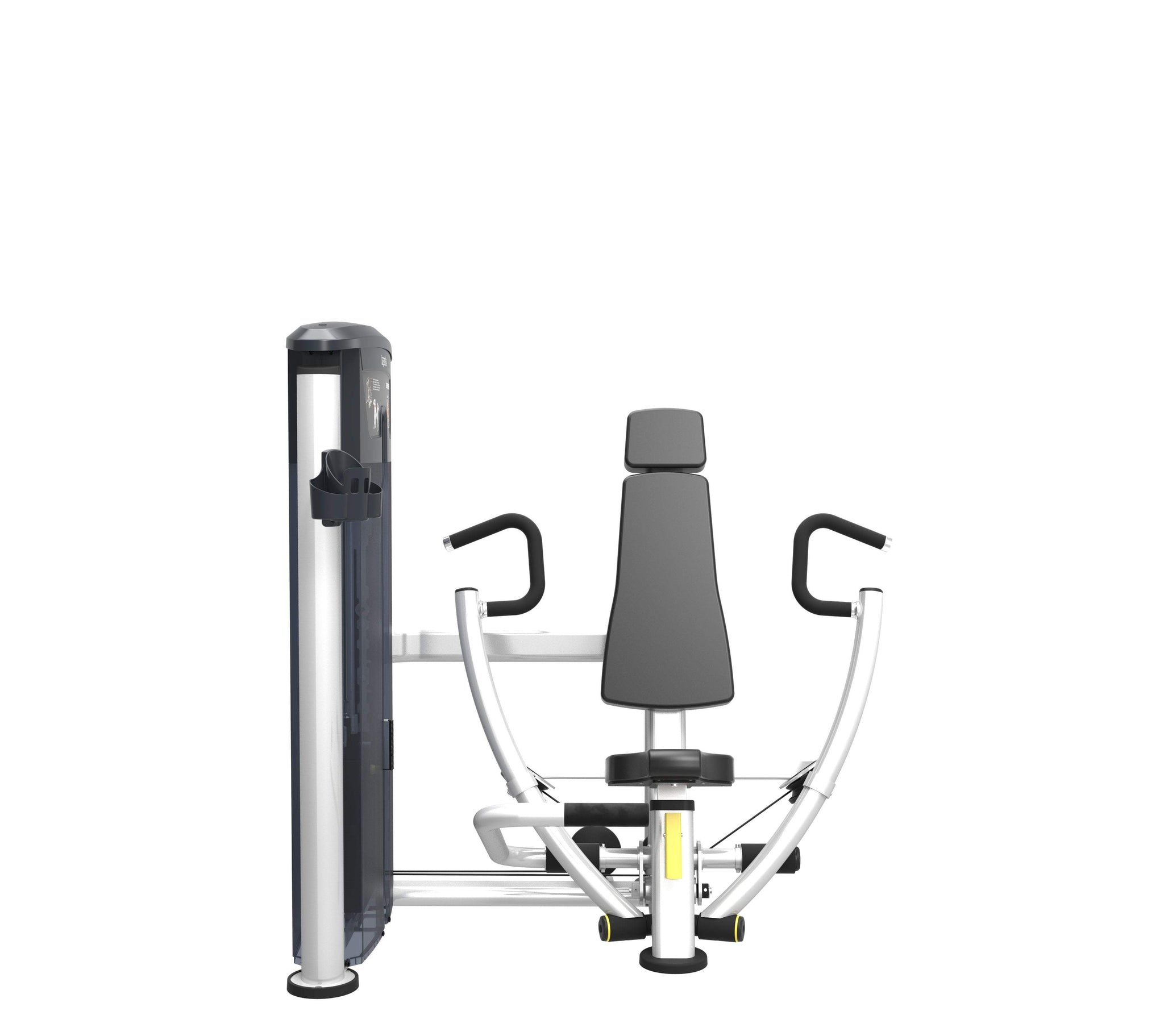 Pin selectorized equipment for mainly working out pectoralis major and triceps muscles. The user can work out chest and arms effectively by pushing the handle after choosing the appropriate weight.