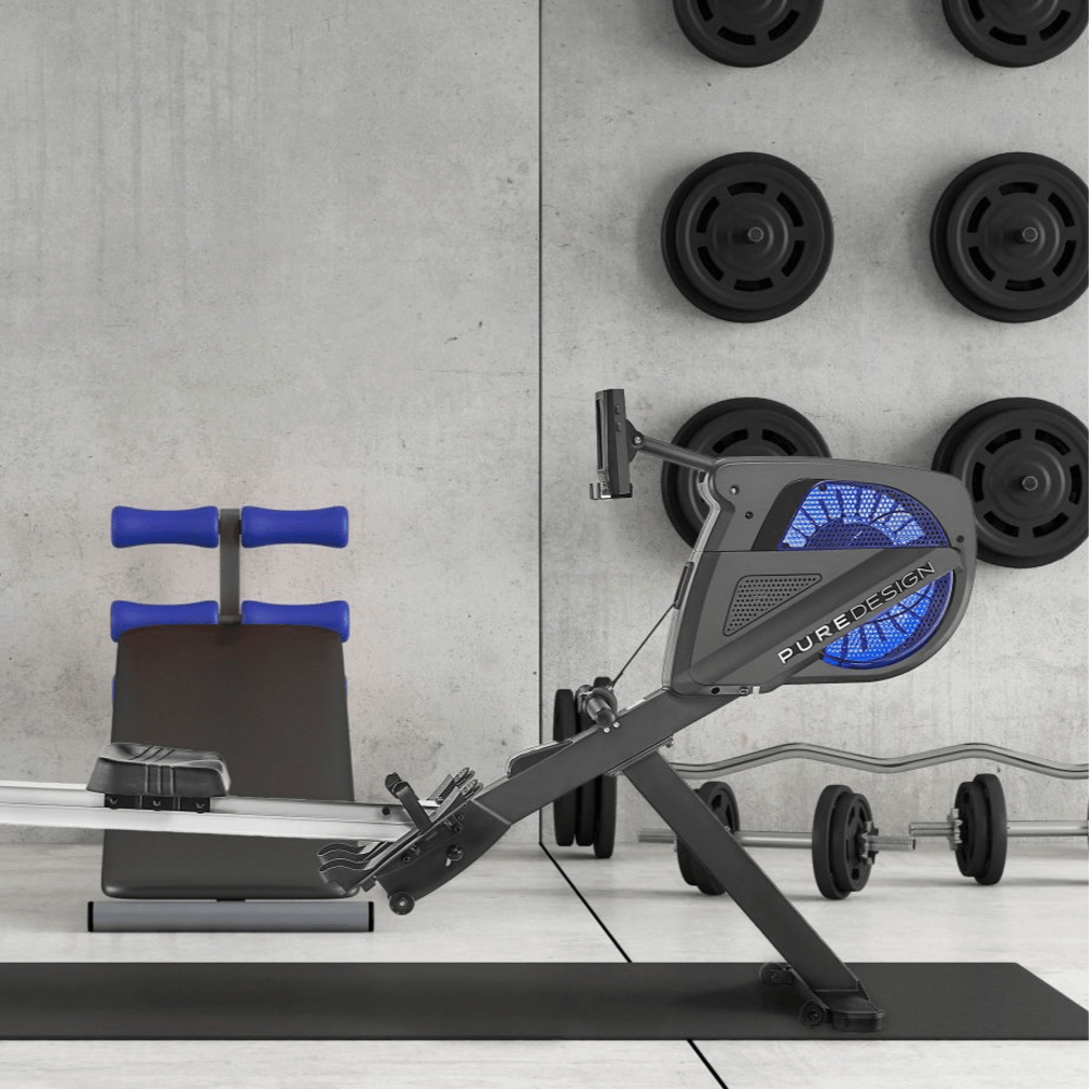 • In-Use Aesthetics: Full auto controlled air magnetic resistance system with custom clutch and RF remote controlled resistance on the handlebar. Super smooth seat rolling action with closer footrest for real feel of rowing on the water easy-fold system to save space.