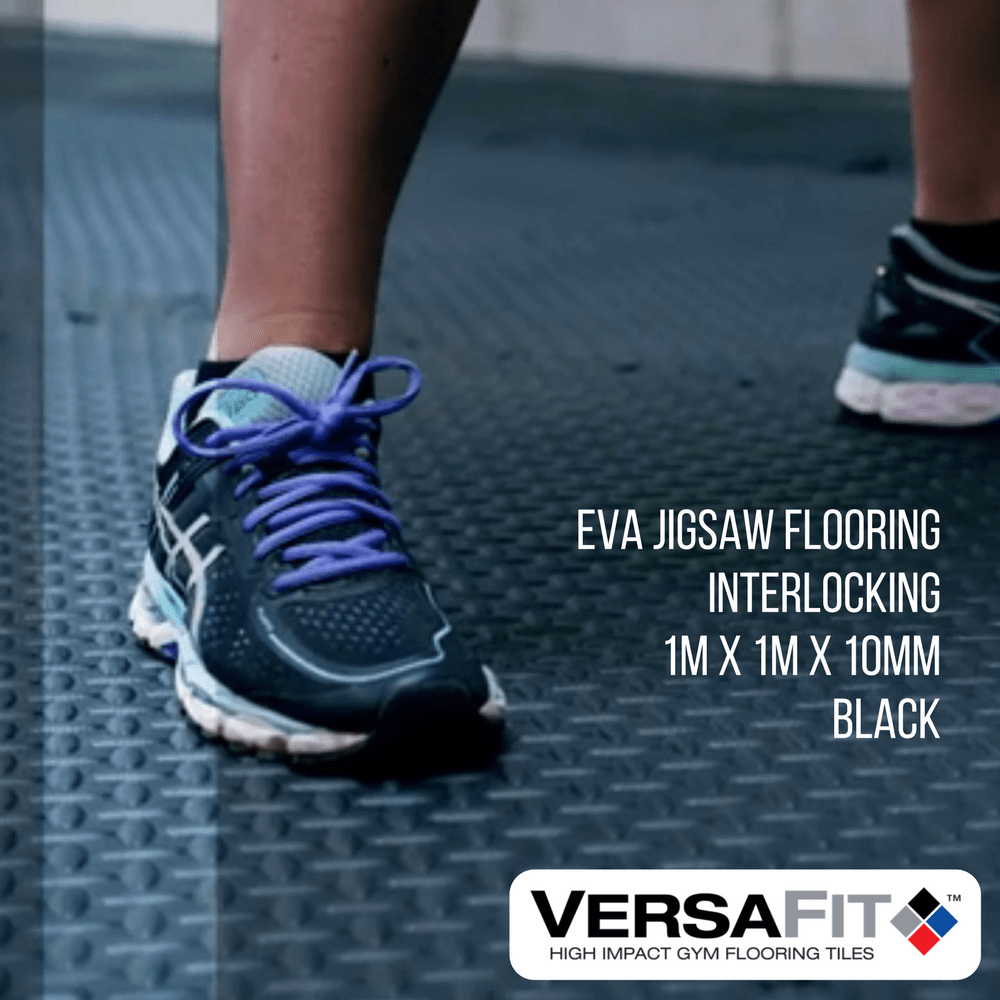 VersaEVA by VersaFit High Impact Gym Flooring Tiles. Interlocking EVA Jigsaw Flooring. Sized 1m x 1m x 10mm and Black in colour. |